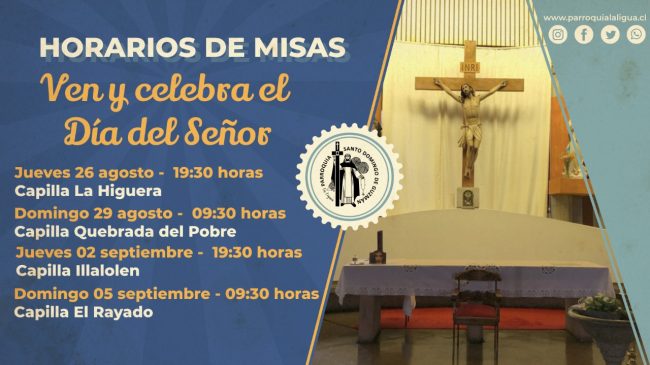 Parroquia Santo Domingo de Guzman de La Ligua informa horarios de celebración de la Eucaristía