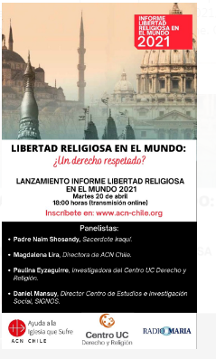 Con conferencia online, ACN Chile presentará el Informe de Libertad Religiosa, que contará con el testimonio del sacerdote iraquí Naim Shoshandy, además del análisis de cómo se vive la libertad…