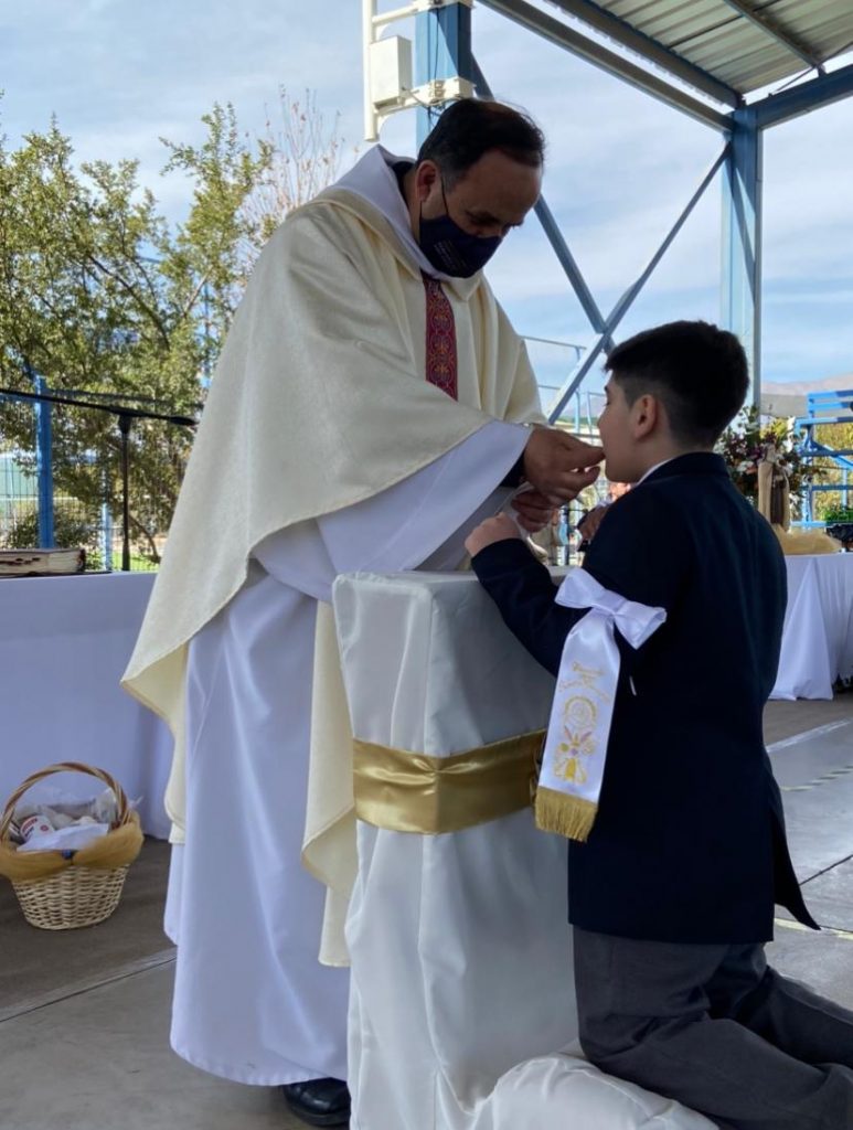 Alegres y emocionados, los alumnos y sus familias, luego de muchos meses de preparación, participaron de una misa que fue presidida por el Padre Andrés Rodríguez, párroco de San José Obrero de Rinconada de Los Andes, y que estaba especialmente pensada para este importante momento.