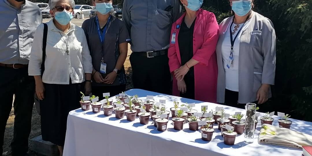 Este homenaje se realizó en uno de los patios exteriores del Hospital y consistió en la entrega a las más de 400 funcionarias que trabajan en el Hospital San Camilo de una planta “suculenta”, como signo de la vida que ella cuidan, porque con su labor se han transformando en custodias de la vida y los hermanos que más necesitados.