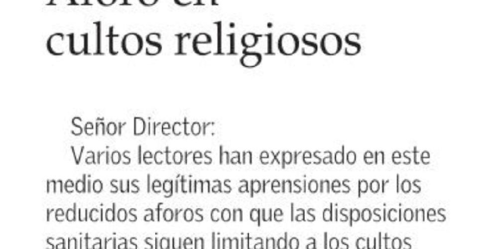 Respecto de las legítimas aprensiones expresadas por algunos lectores del medio El Mercurio, ante los reducidos aforos con que las disposiciones sanitarias siguen limitando a los cultos religiosos, en relación a otras actividades, la Conferencia Episcopal ha dirigido una misiva al diario.