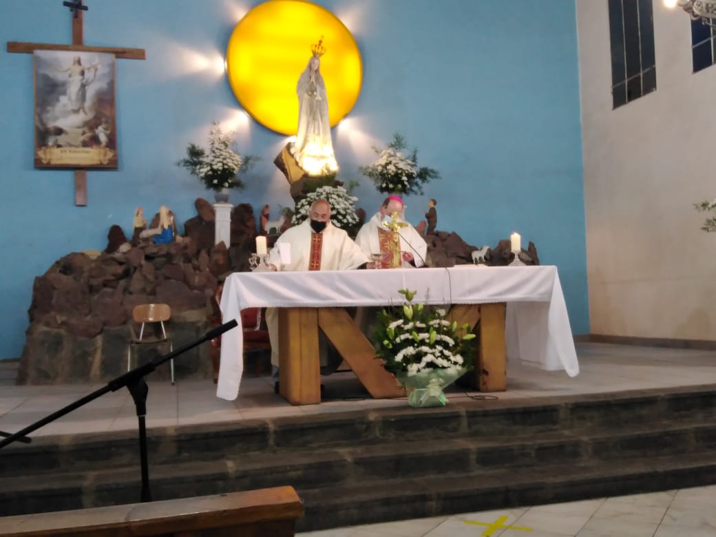 La eucaristía fue presidida por el Padre Gonzalo Bravo Álvarez, Obispo de San Felipe acompañado por el padre Ricardo Olavarría y un pequeño grupo de feligreses, además esta celebración fue transmitida en directo por las ondas de Radio Fátima y por facebook live.