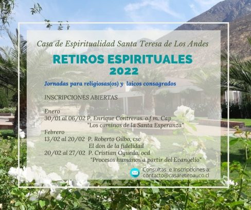 La Casa de Retiro Espiritual Santa Teresa de Los Andes con mucha alegría y esperanza, nos hace llegar su programación…