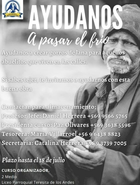 Curso de segundo año de enseñanza media invita a confeccionar gorros de lana para personas que viven en albergues. Una…