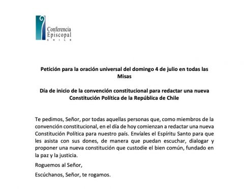 La Conferencia Episcopal de Chile da a conocer una petición para la oración universal del domingo 4 de julio en…
