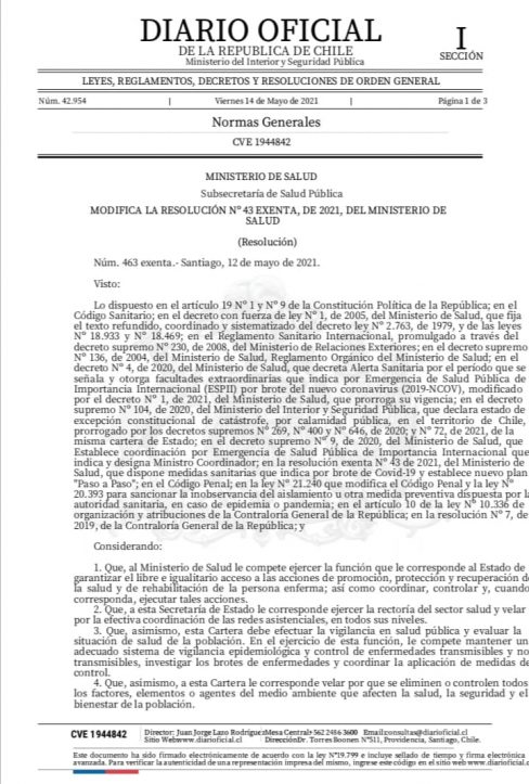 En el Diario Oficial de hoy viernes 14 de mayo de 2021, se publica la resolución 463 exenta, del 12…