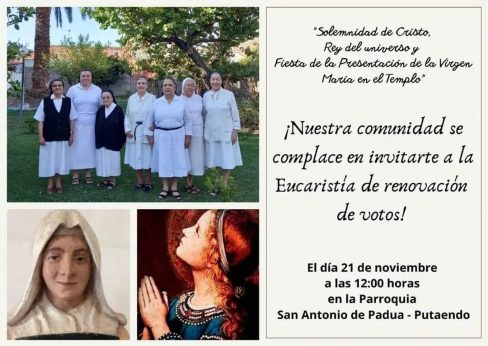 Hermanas Dominicas de la Presentación de la comunidad de Putaendo renovarán sus votos el domingo 21 de noviembre en la…