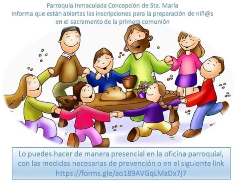 Parroquia Inmaculada Concepción de Santa María, inicia período de Inscripciones para comenzar, próximamente, la preparación al Sacramento de la Primera…