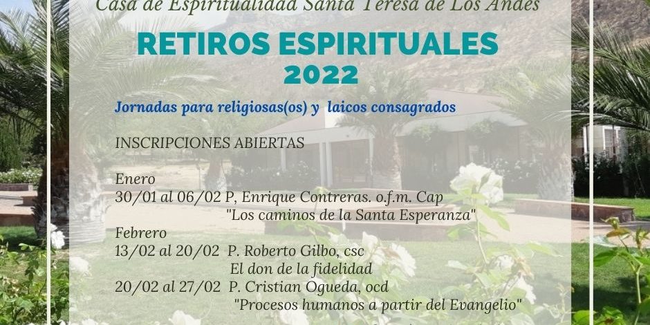 La Casa de Retiro Espiritual Santa Teresa de Los Andes con mucha alegría y esperanza, nos hace llegar su programación de Retiros Espirituales a realizarse desde este lugar, para el año 2022.