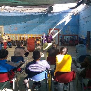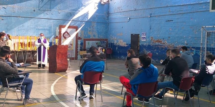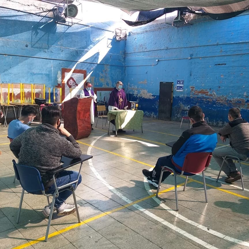 Padre Gonzalo Bravo, Obispo Diocesano, presidió la Eucaristía, en uno de los patios al interior de la cárcel, con todas las medidas de seguridad y con el aforo permitido.