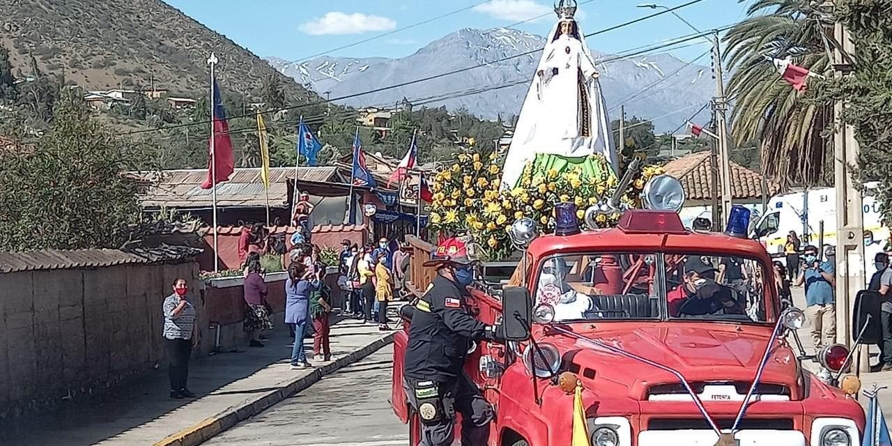 La Imagen fue llevada en el carro de bomberos que data del año 1962 siendo la última salida de dicho carro antes de su retiro definitivo. La procesión recorrió todos los sectores de la comuna y fue acompañada por una caravana de vehículos por todo el pueblo. Al pasar, se veía a los fieles alzando pañuelos, danzantes de los bailes religiosos con sus trajes de fiesta, adultos mayores con lágrimas en los ojos y muchos feligreses agradecidos por la visita de la Madre de Dios, pese a las circunstancias que vive el país.
