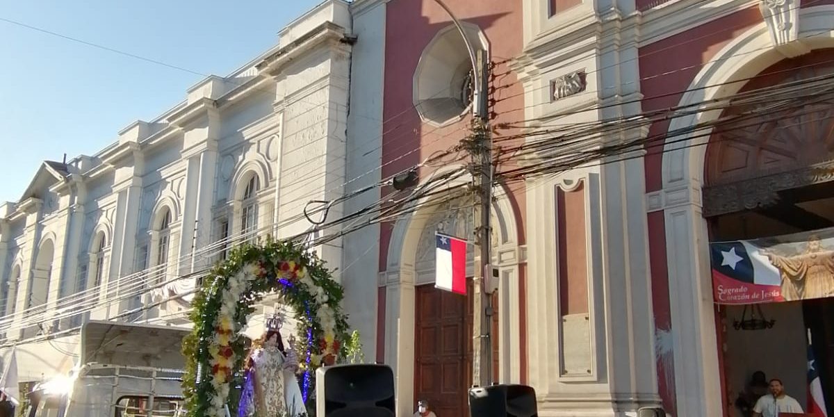 Un punto importante de la celebración se realizó en el frontis de la Iglesia Catedral de San Felipe donde un grupo de laicos esperaban a la Virgen de Andacollo para orar por la ciudad, por los enfermos y fallecidos por el COVID-19 y también para agradecer la entrega y servicio de todo el personal de salud.