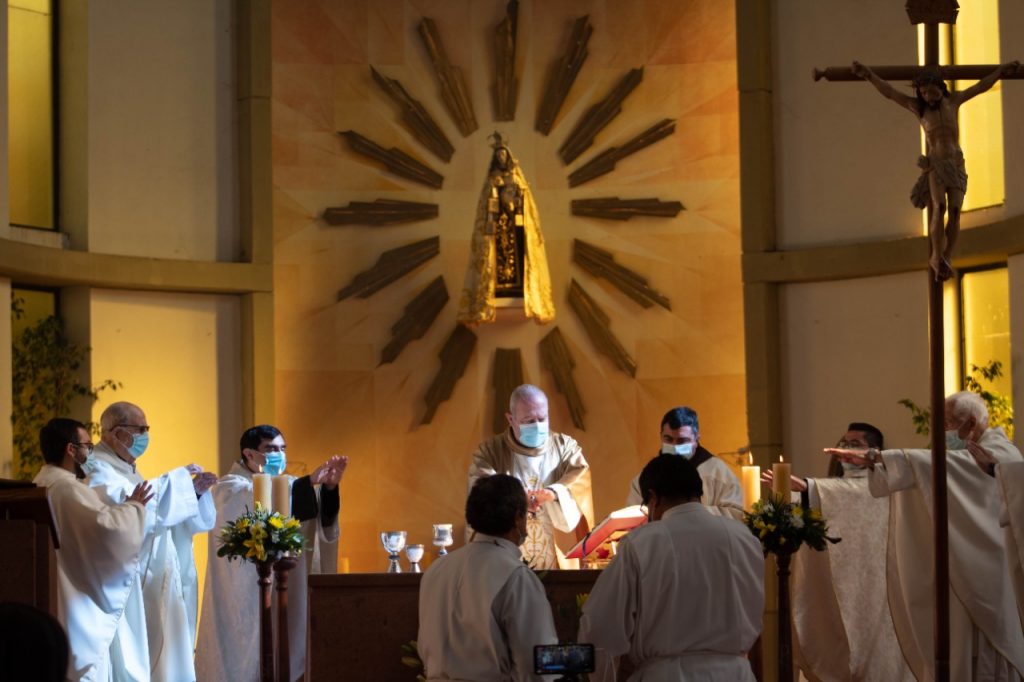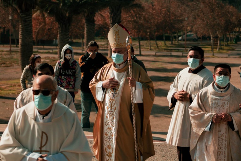 La misa fue presidida por el Nuncio Apostólico en Chile, Mons. Alberto Ortega, R.P. Erwin Montoya OCD. Provincial de la Orden, R.P Rodrigo Segura OCD. Rector del Santuario y sacerdotes Carmelitas Descalzos junto a un reducido número de peregrinos, para mantener los protocolos y aforos establecidos por la Autoridad Sanitaria.