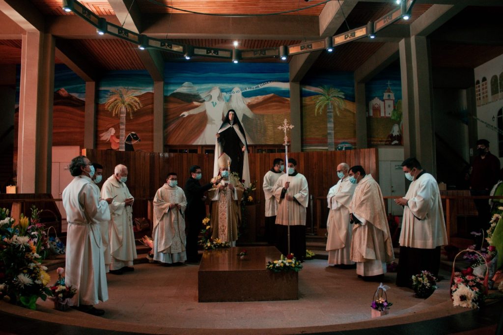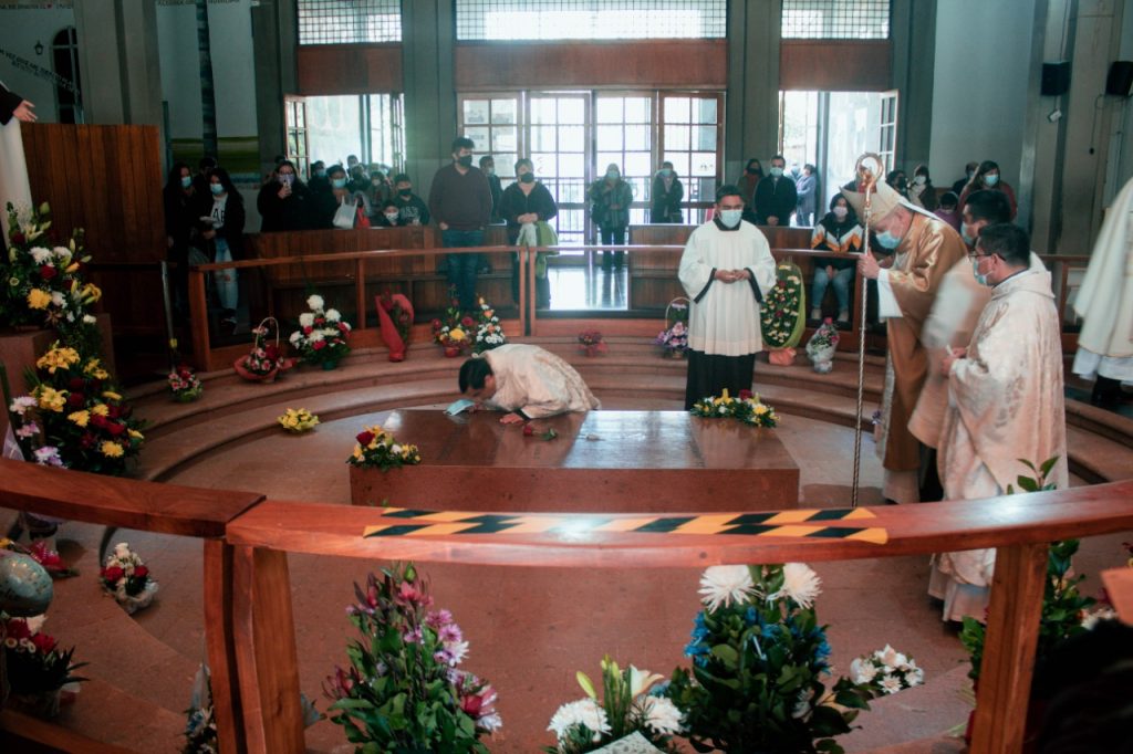 Al finalizar la eucaristía el Padre Rodrigo Segura, rector del Santuario, invitó a los presentes a bajar hasta la cripta, para orar frente a los restos mortales de Teresita y pedir su intersección, especialmente en estos momentos en que el mundo se ha visto azotado por la pandemia y nuestro país inició el proceso Constituyente.